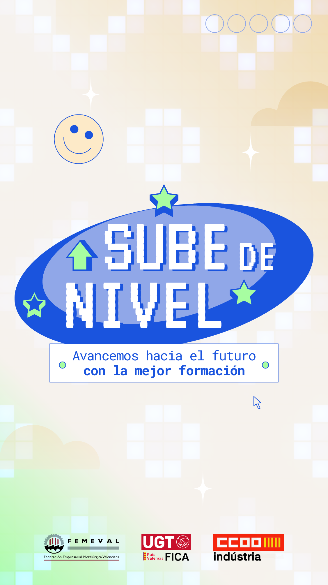 Asimismo, la jornada ha servido de plataforma de presentación de la campaña “SUBE DE NIVEL, Avancemos hacia el futuro con la mejor formación”. Una iniciativa conjunta de FEMEVAL, CCOO PV Industria y UGT FICA PV inspirada en el mundo de los videojuegos clásicos donde la expresión "Subir de nivel" se refiere al proceso de cada jugador o jugadora de mejorar sus habilidades y descubrir nuevos conocimientos para avanzar y ganar la partida.