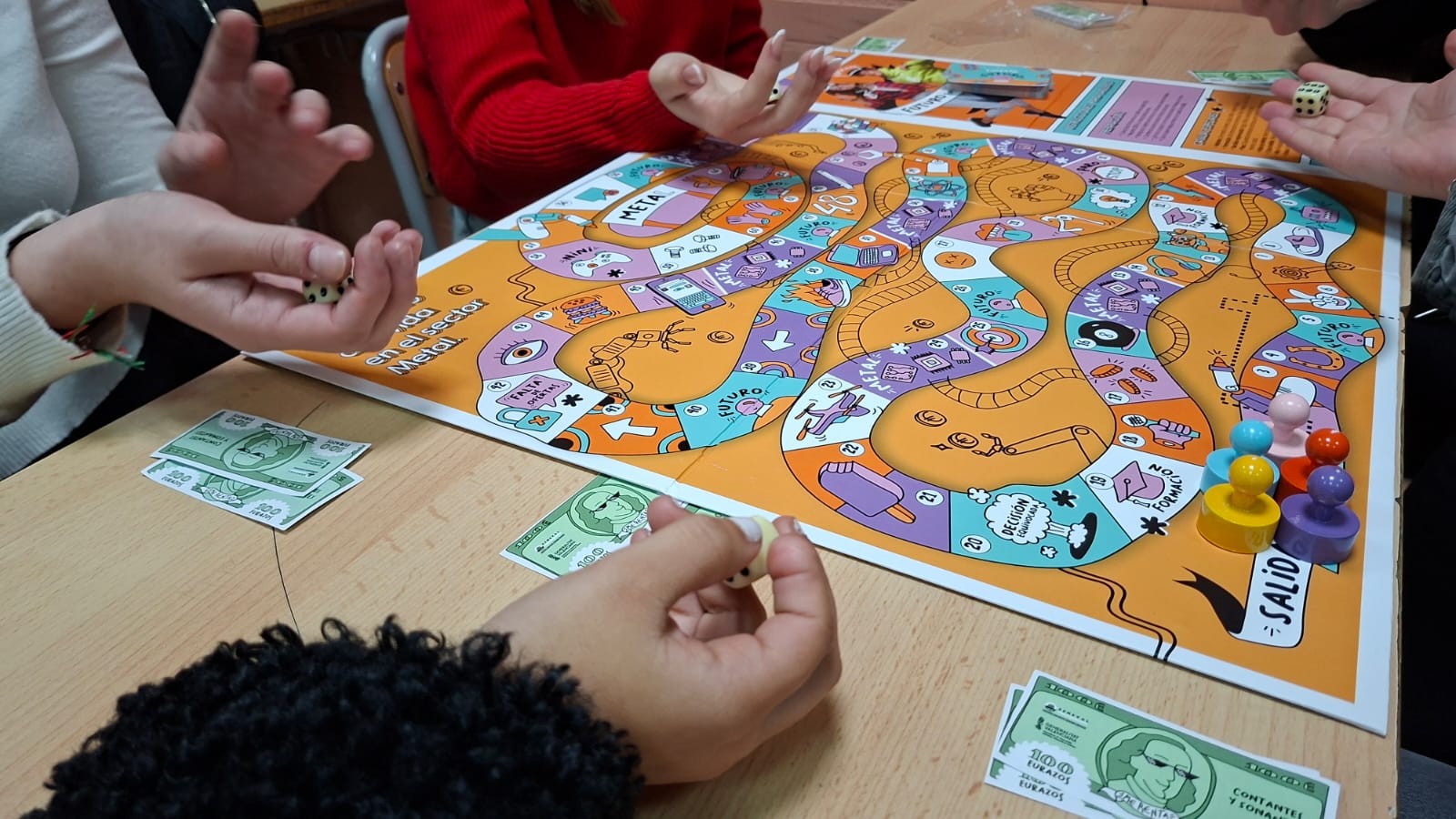 Ideas que también se han trasladado a las aulas con una dinámica gamificada inspirada en el Monopoly y el Juego de la Oca. El tablero representa un recorrido hacia el éxito profesional y está dividido en 63 casillas con “tarjetas de futuro” que plantean decisiones acertadas o erróneas sobre la vida laboral. Las malas jugadas implican perder dinero o turnos; las buenas —ligadas a la FP Metal— premian con recursos económicos y puntos de experiencia vital.